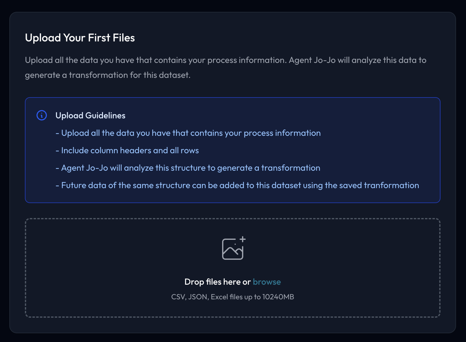 Flow Myna uses a 5-step wizard that combines AI automation with human review to transform your raw data into process-ready format: