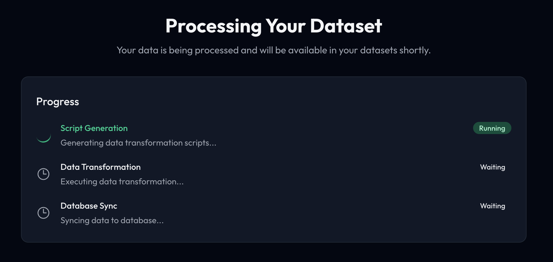 What happens: The AI agent pipeline analyzes your data automatically. This is where the magic happens.